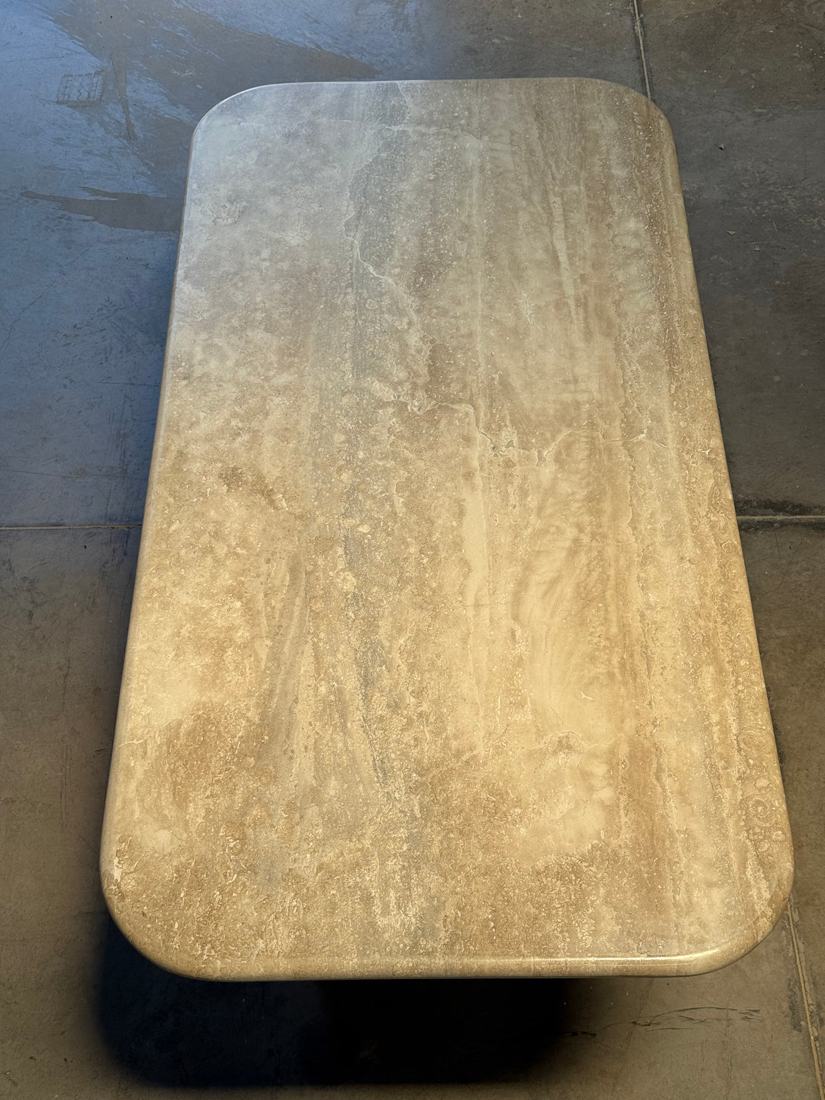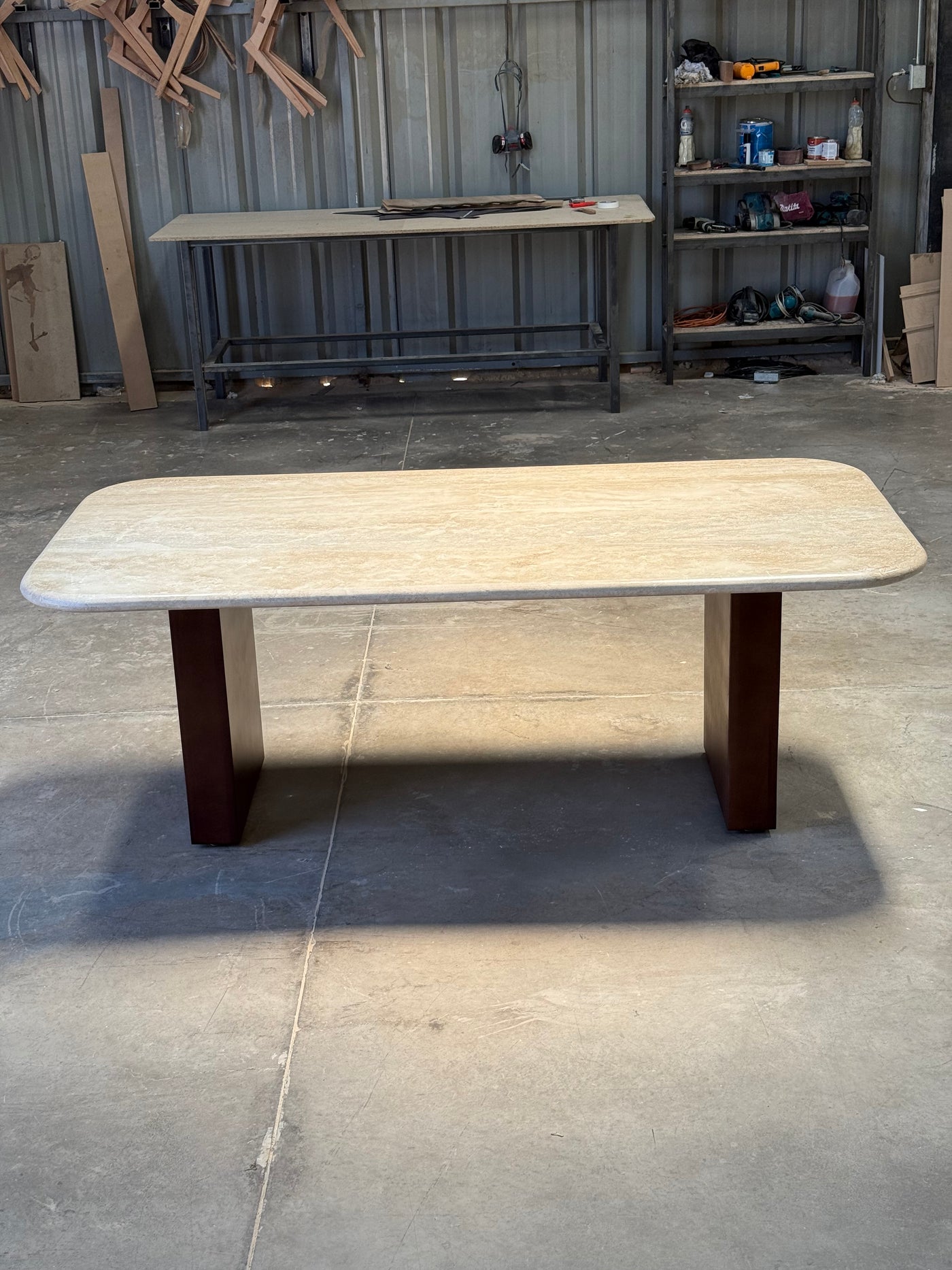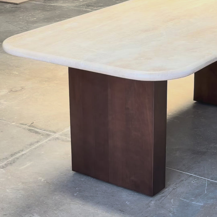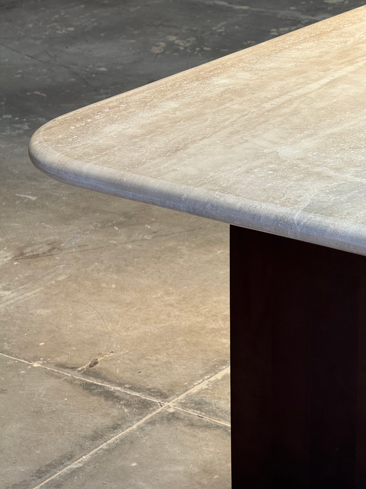 Tivoli: donde el travertino vive. Una mesa hecha a mano, con piedra natural y diseño minimalista. Líneas limpias, textura real...